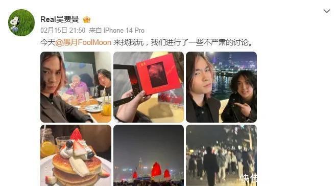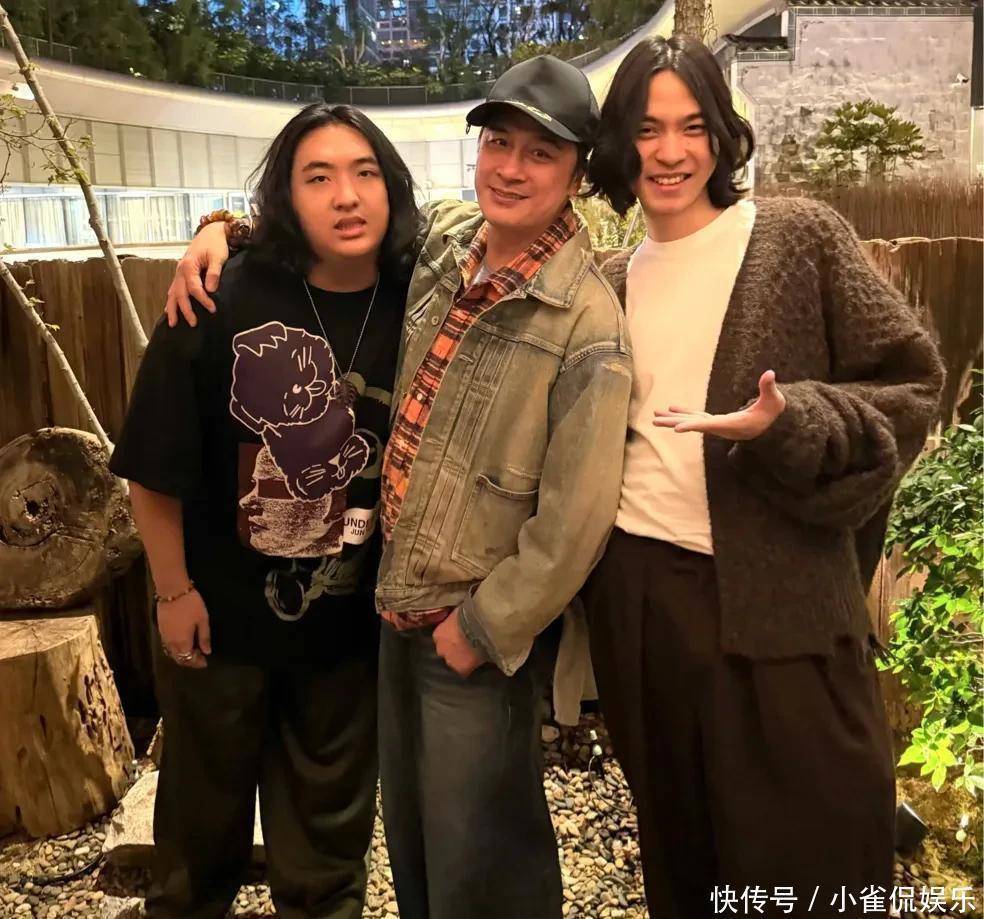 愚月在社交平台上晒出和吴镇宇父子的合照,并配文感谢费曼让他能见到吴镇宇,非常开心。照片�岁的吴镇宇身穿橙蓝色格子衬衣,外穿牛仔外套,配深蓝色牛仔裤,头戴黑色棒球帽,一身穿搭十分时髦洋气,面部保养的皮肤光滑,虽然笑起来满脸褶子,但依旧少年感满满。反�岁的儿子费曼身穿黑色短袖配牛仔裤,中分油头披肩长发,胖到认不出,体重直�斤,身高比吴镇宇还矮半头,脸更是他的两倍大,虎背熊腰和小时候可爱活泼的费曼判若两人。